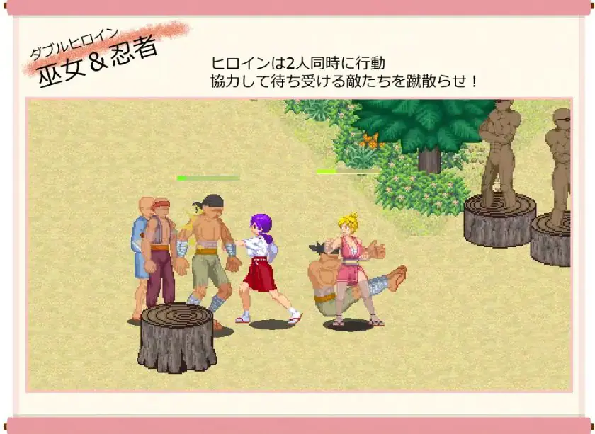巫女Kanna与忍者AoI为夺回被无脸怪占领的忍者村而联手作战。玩家将操控两位性格鲜明的少女,